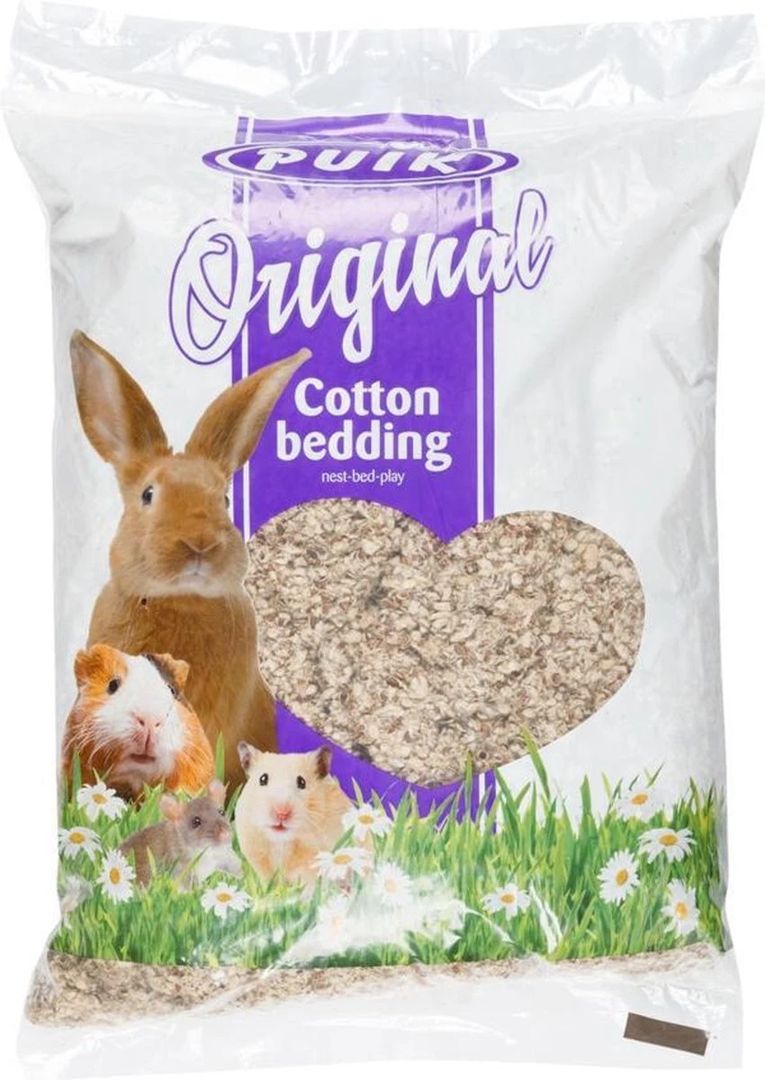 Met PUIK Katoenbedding houdt je het hok van knaagdieren zoals caviaβs, konijnen en hamsters gedurende lange tijd vrij van vocht en nare geurtjes. Puik Katoenbedding is stofvrij en de dieren nestelen zich graag in de warme en zachte katoenvezel. Ook is de katoenbedding zeer sterk absorberend.