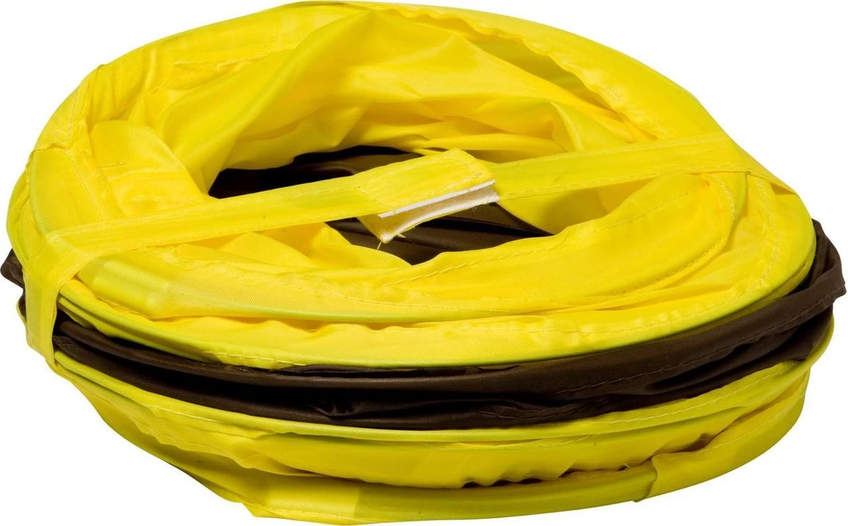 De tunnel is gemaakt van hoogwaardig nylonmateriaal waardoor deze geschikt is voor binnen en buiten. Met behulp van de lusjes kan je de tunnel heel eenvoudig in elkaar klappen en opbergen. Door de tunnel af en toe aan te bieden (dus niet te laten liggen) blijft deze uitdagend en interessant.