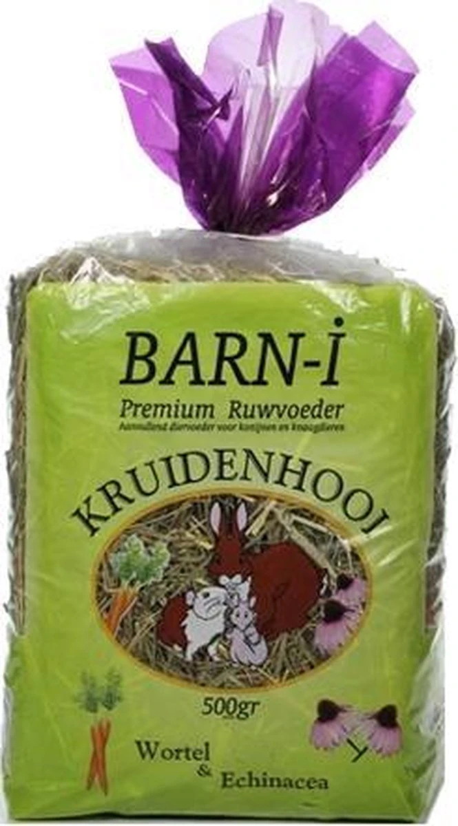 Met Barn-i Kruidenhooi kunt u uw konijn of knaagdier van vers geurend hooi voorzien. Om het hooi extra aantrekkelijk te maken voor uw huisdier zijn er kruiden aan het hooi toegevoegd. Hooi is een bron van vezels en draagt bij aan de spijsvertering van het dier. Barn-i Kruidenhooi is verkrijgbaar in vijf verschillende smaken.
