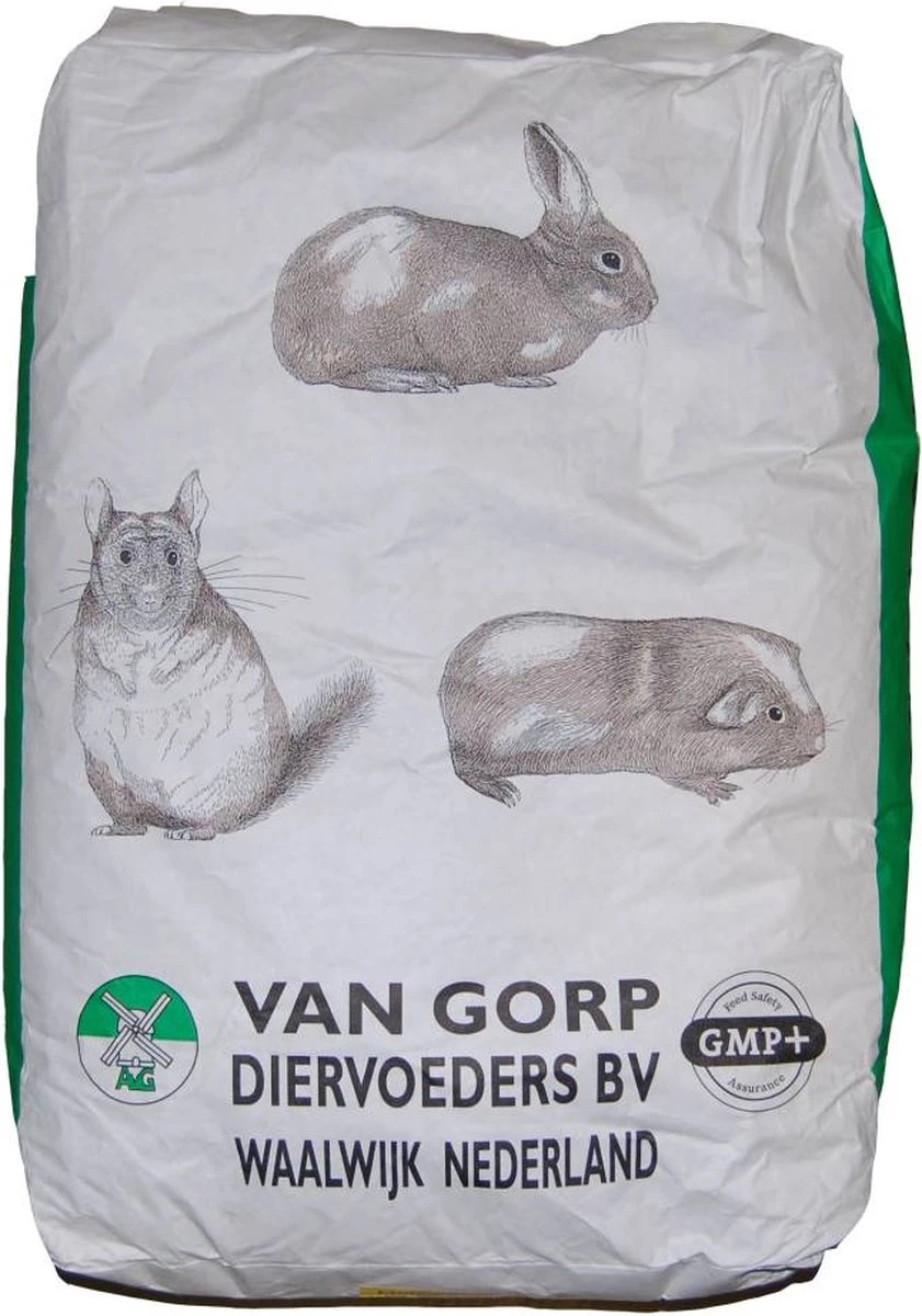 Gerst, zonnepitschroot, gras/luzorne, haver, tarwe, tarwegries, soyax, premix, lijnzaad, melasse, krijt, lysine, calciumfosfaat, methionine, kruiden.