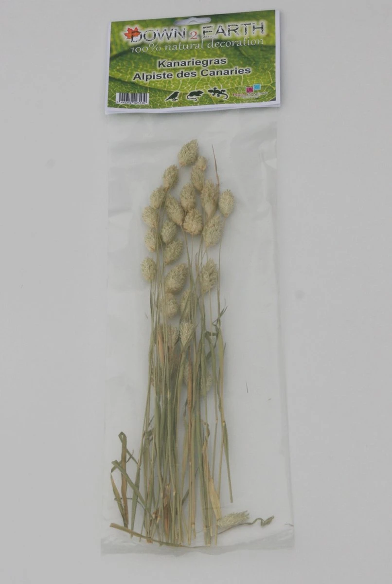 gedroogde Kanariegras stengels. Het is 100% natuurlijk en ideaal als decoratie. Door het droogproces bevinden zich er geen insecten of parasieten meer op de gerst