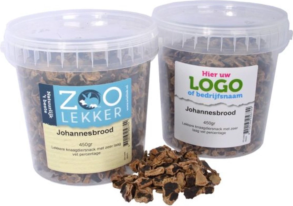 Johannesbrood is een gezonde snack om uw knaagdier of konijn eens lekker te verwennen. De kleine zoete stukjes zijn afkomstig van gedroogde en gebroken peulen van de johannesbroodboom. Rijk aan vezels, calcium en ijzer. Verpakt in een handig emmertje met deksel.