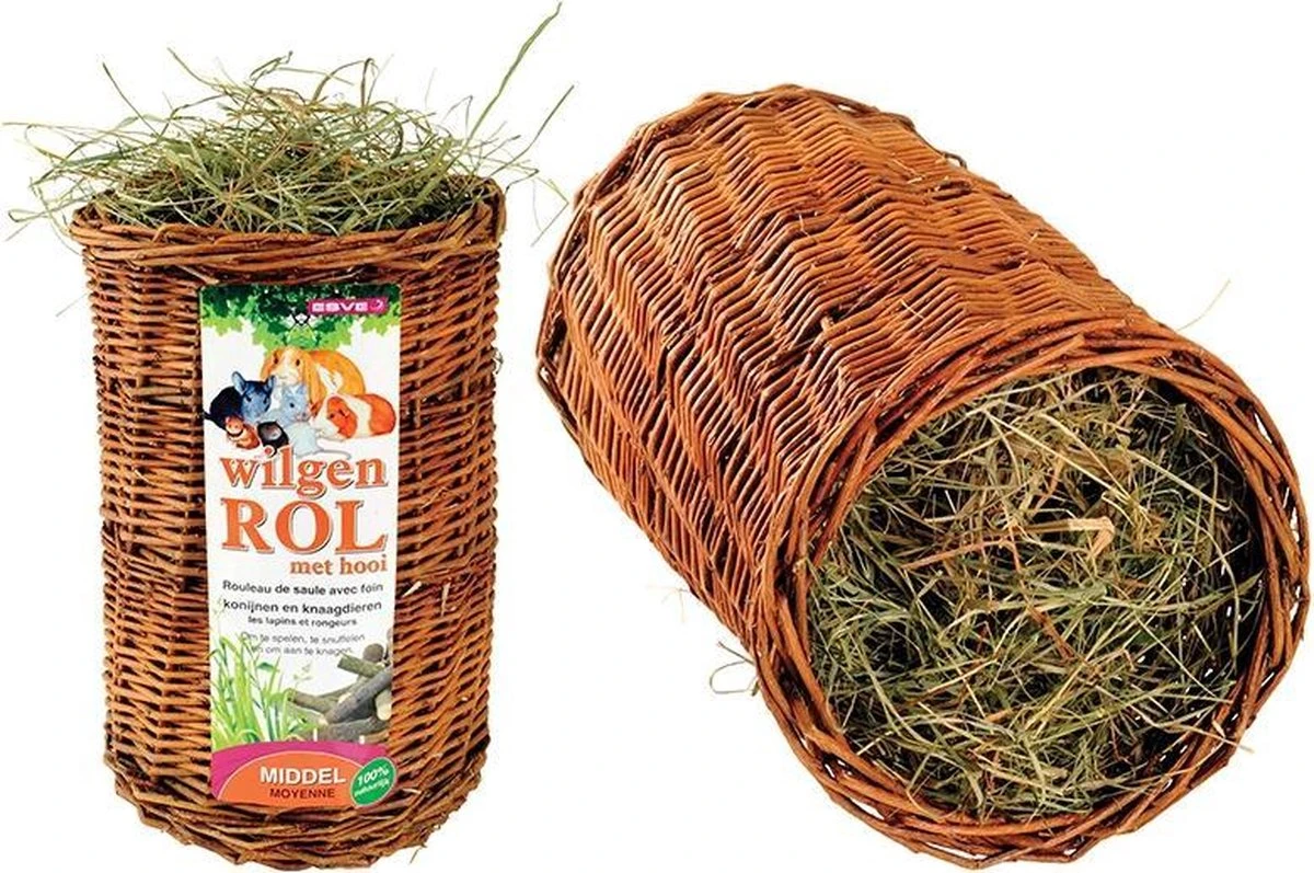 Wilgenrol Middel de ideale combinatie tussen een knaag en speelplaats voor uw cavia, chinchilla of rat. 100% natuurlijk rol van wilgenhout volledig gevuld met hooi