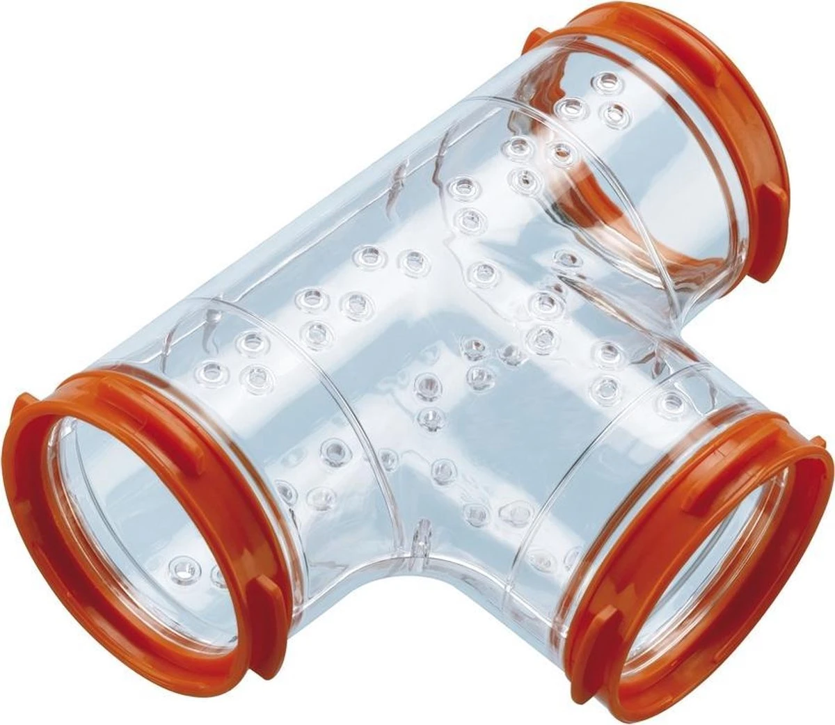 De verschillende plastic buizen van Ferplast (rechte tunnels en diverse bochten) kunnen aan elkaar worden gemonteerd, zodat je een oneindig lang buizenstelsel voor je hamster kan creΓ«ren. Hamsters leggen in de natuur lange afstanden af, met een buizenstelsel gemaakt van deze plastic buizen voorzie je in de loopbehoefte van je hamster. De buizen zijn gemakkelijk uit elkaar te halen, zodat je ze goed kan schoonmaken. Je kan het Tunnel T-Stuk uitbreiden met andere Ferplastaccessoires.