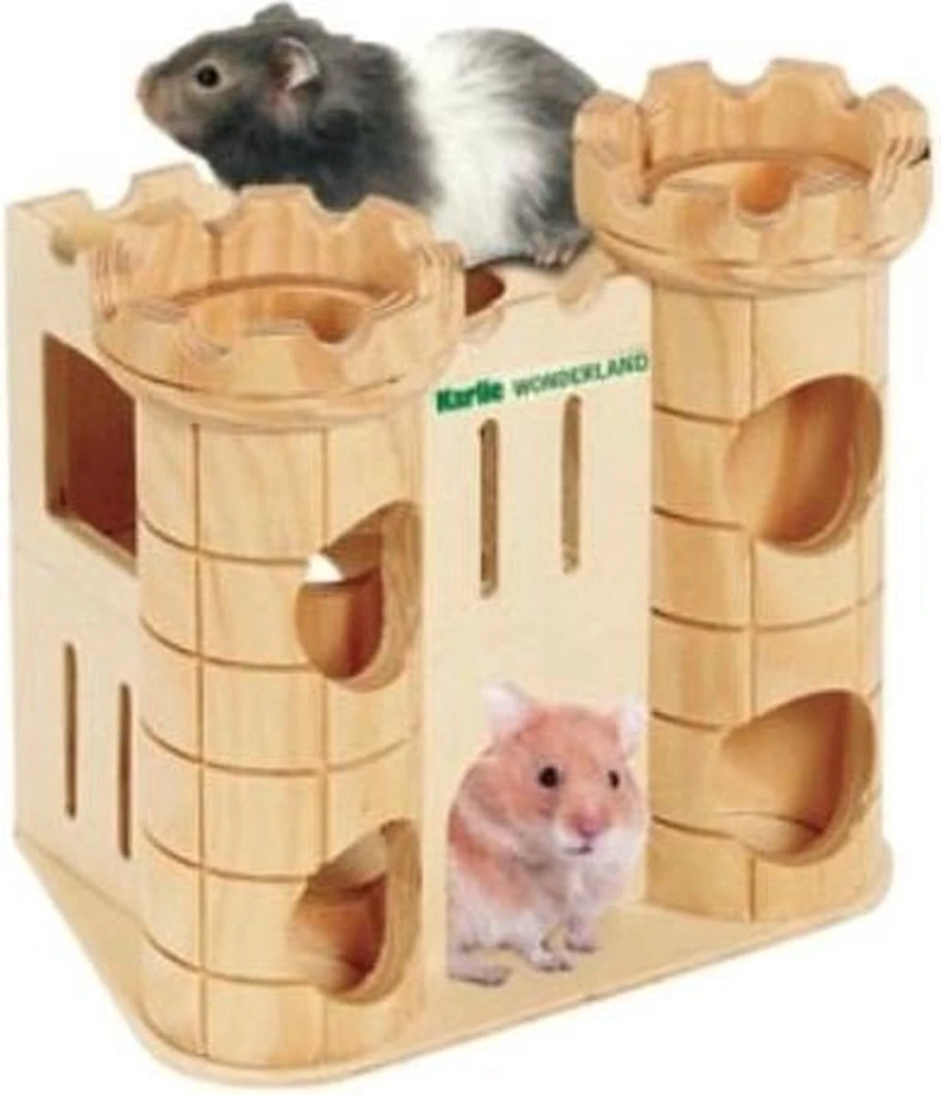 Uw hamster heeft met dit leuke huisje drie verdiepingen tot zijn beschikking met als hoogtepunt de twee uitkijktorens.