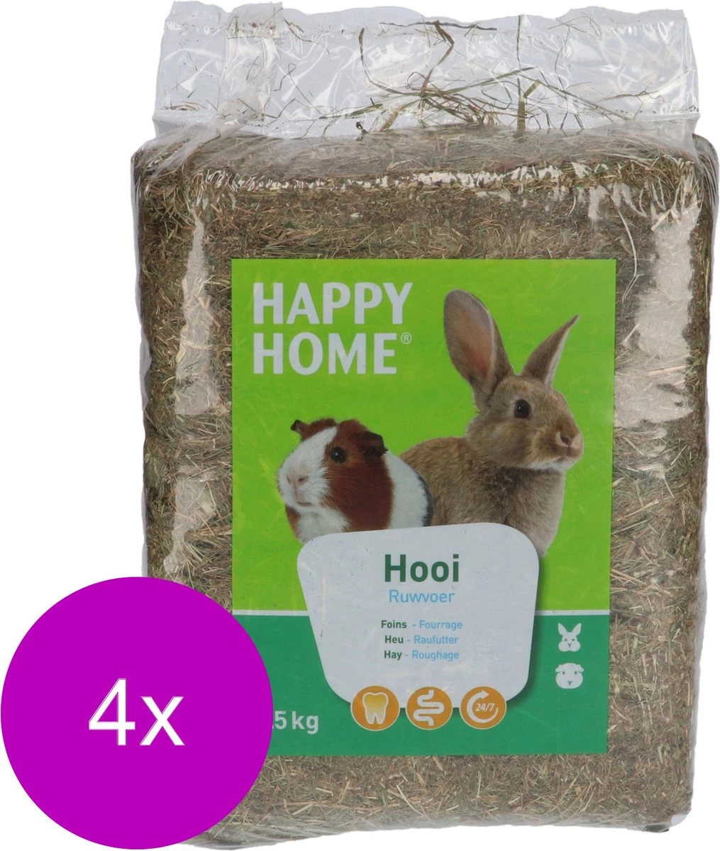 Hooi behoort elke dag vers beschikbaar te zijn voor je konijn of knaagdier. Je knager waant zich even op een frisse alpenweide met dit frisse geschoonde Happy Home weidehooi. Dit Happy Home weidehooi zorgt voor een gezonde darmflora en daarmee een goede algehele conditie van je huisdier. Kortom dit ‘Happy Home Weidehooi’ is een bewuste keuze.br /-Hoog gehalte ruwe vezelsbr /-Houdt de conditie op peilbr /-Gezonde keuze