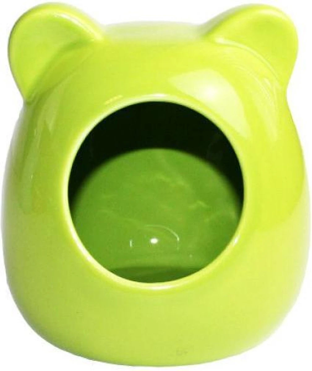 Het Happy Pet Knaagdierhuisje Hamster Keramiek Groen van 12 x 12 x 13 cm is een schattig huisje voor hamsters en muizen, in de vorm van een hamsterkopje. Fijn en beschermend voor jouw kleine knagertje en voor jou leuk om naar te kijken! Dit schattige huisje is gevormd als een hamsterkop en voorzien van schattige oortjes. Het huis is gemaakt van keramiek en daardoor van een fijne, stevige kwaliteit. Door de gladde structuur is het huisje gemakkelijk af te nemen en te reinigen. Door het gat aan de voorkant kan de hamster naar binnen: het huisje leent zich door de verder dichte vorm ook zeer goed voor het gebruik met nestmateriaal.