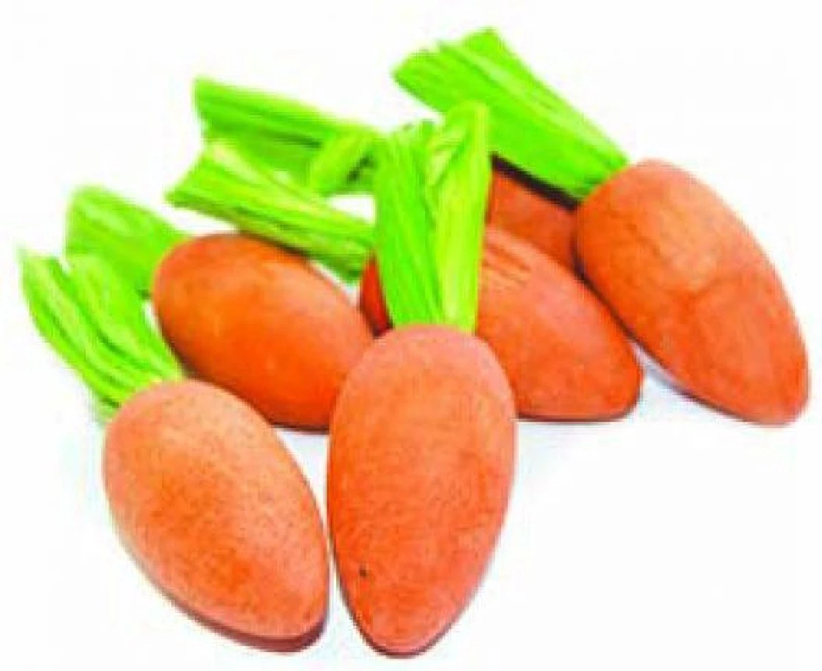Happy Pet Carrot Nibblers Knaaghout 6 st 8x3x3 cmDeze knaaghoutjes in de vorm van een wortel hebben een wortelsmaak en zijn ideaal voor jouw konijn of knaagdier. Het knaaghout brengt jouw dier uren knaagplezier. Hang deze nibblers telkens op een andere plek in het hok zodat jouw dier elke keer een nieuwe uitdaging heeft om zijn tanden te slijpen!Inhoud: 6 stuksKleur: oranjeAfmeting per stuk: 8x3x3 cm
