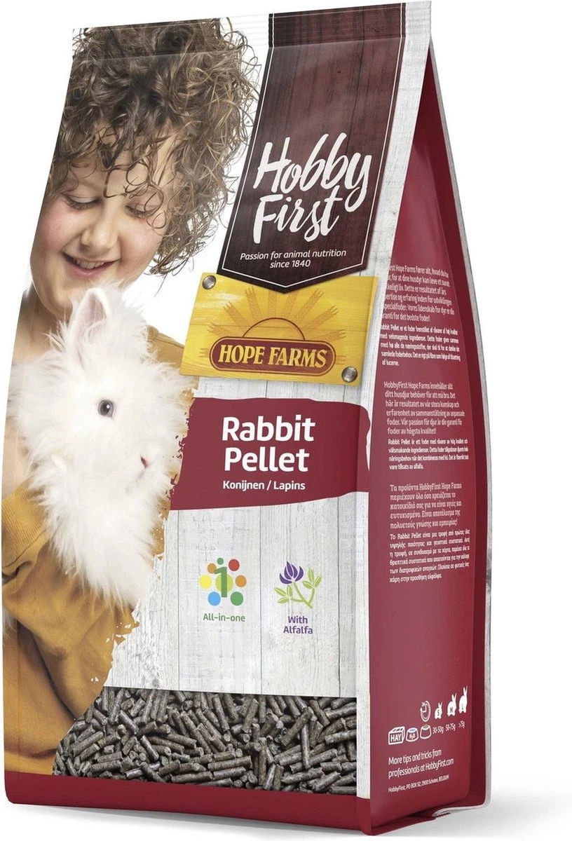 Rabbit Pellet is een voeding met hoogwaardige grondstoffen en smakelijke ingrediënten. Deze voeding levert, samen met hooi, alle nutriënten van de complete voedingsbehoeften. Het is rijk aan vezels door toevoeging van Alfalfa.