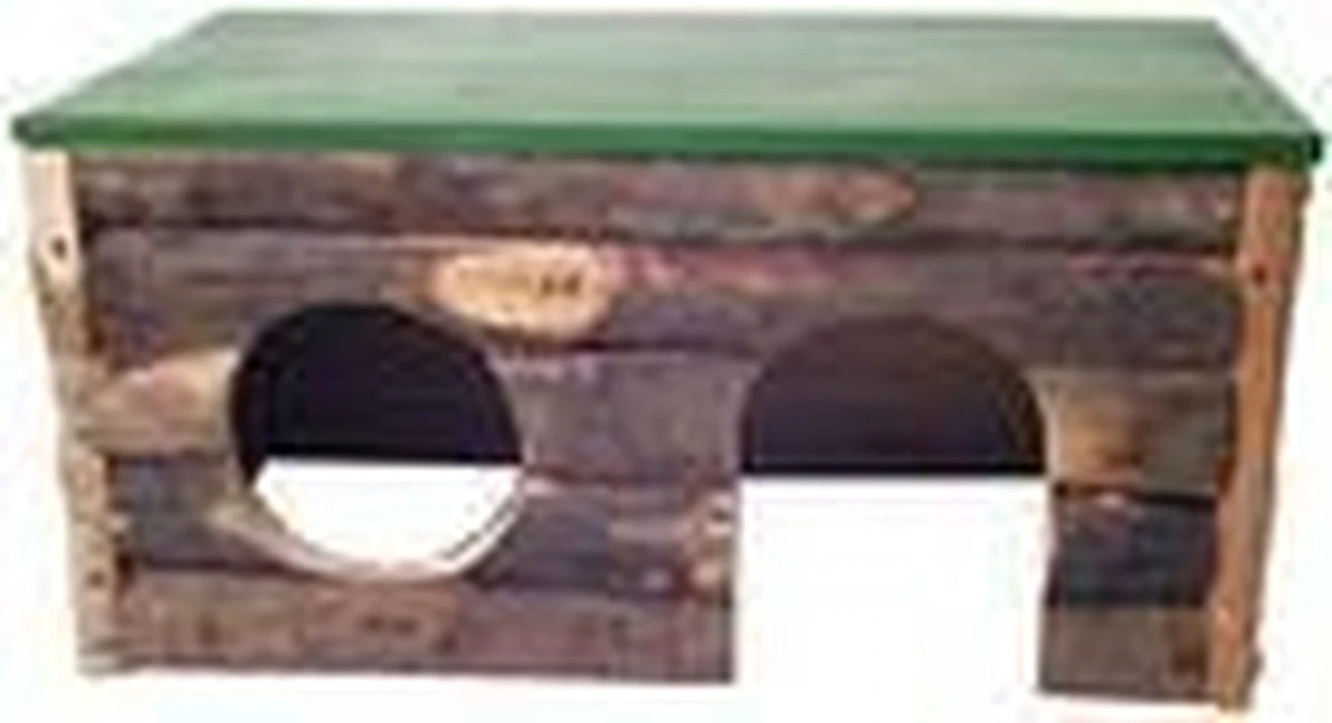 Houten blokhutje voor knaagdieren. Voor speel en slaapcomfort.