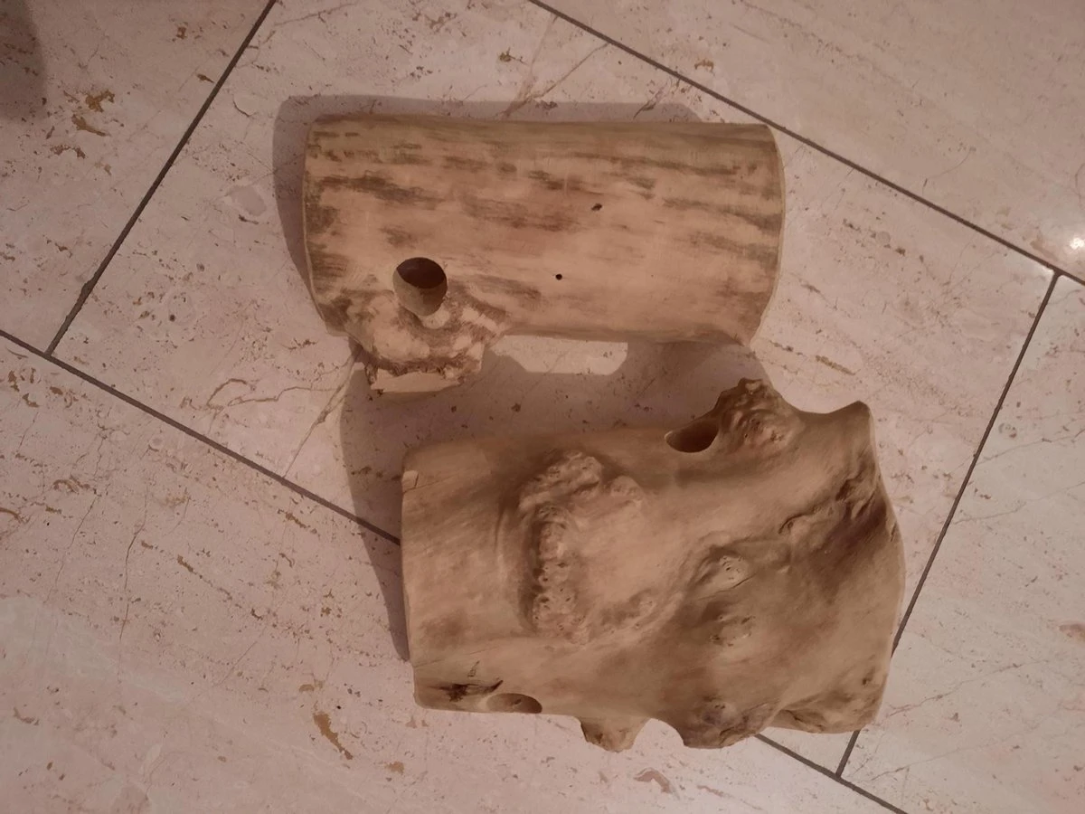 Een uniek huisje voor kleinere knaagdieren zoal muis en hamster , gemaakt van keihard javahout,daaraan knagen gaat niet zo eenvoudig buitenmaat 19 cm lang binnenmaat (open) tussen 7 en 9 cm
