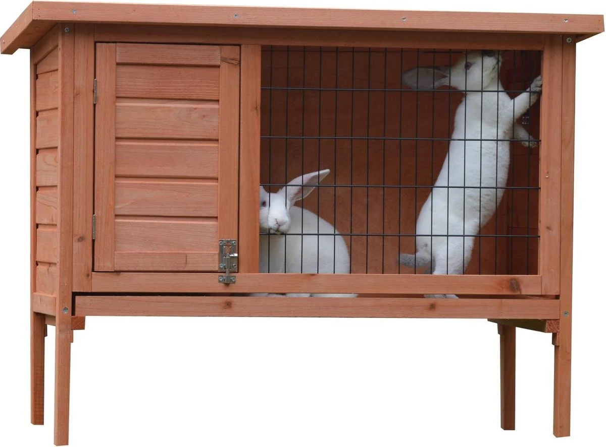 Konijnenhok Elena is een eenvoudig instapmodel voor wie wil starten met het houden van konijnen. Dit rechthoekige dierenhok staat op hoge poten en heeft een grote toegangsdeur.