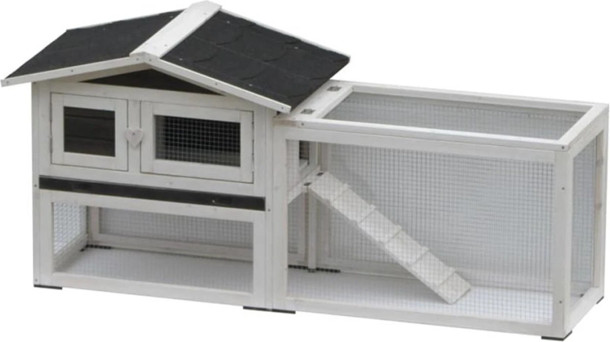 Op zoek naar een strak, maar ruim konijnenhok? Dan is dit hok precies wat je zoekt! Het ruime konijnenhok heeft maar liefst twee verdiepingen. De onderste verdieping heeft een ren over de gehele breedte van het hok. Dit zorgt voor veel bewegingsvrijheid. De tussenwand in de ren is voorzien van een solide houten schuifdeurtje die geopend of juist afgesloten kan worden. De bovenste verdieping, bereikbaar middels een trapje met horizontale balken voor extra grip, geeft jouw huisdier rust en comfort. Ideaal om zich terug te trekken en er de nacht door te brengen. Konijnenhok Manou is van hoogwaardige kwaliteit, heeft een klassieke en strakke uitstraling en is gemaakt van de beste materialen.