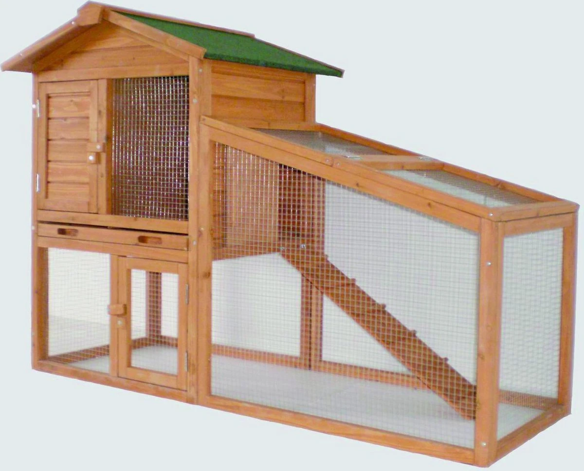 Op zoek naar een groot, natuurlijk ogend konijnenhok? Dan is dit hok precies wat je zoekt! Konijnenhok Tommy heeft maar liefst 2 verdiepingen. De onderste verdieping betreft een ren over de gehele breedte van het hok. Dit zorgt voor veel bewegingsvrijheid. Middels een trapje, met horizontale balken voor extra grip, kan jou huisdier naar boven om zich terug te trekken of er de nacht door te brengen. Het nachthok is volledig af te sluiten.