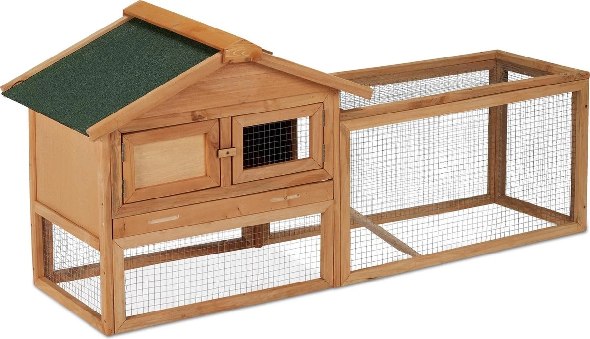 Wil je je knaagdier een fijn huisje in de tuin geven, dan is dit hok met ren een goede keuze. Door de loopplank kunnen hazen, konijnen of cavia’s zelf bepalen, of ze in de ren willen blijven en vers gras willen grazen of liever zichzelf willen terugtrekken in het konijnenhok. Het openslaande dak en de uitneembare lade maken het schoonmaken van het hok met twee verdiepingen eenvoudig.