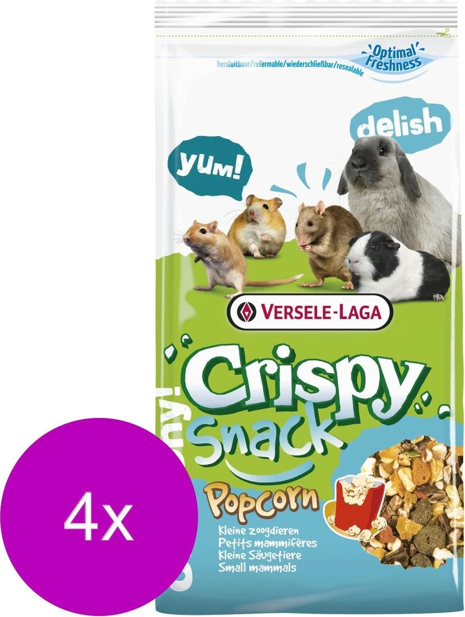 Snack popcorn is een product van Versele-Laga Crispybr /-Met heerlijke groentebrokjes, krokante vlokjes en gepofte granenbr /-Handig in gebruik door de hersluitbare vershoudverpakkingbr /-