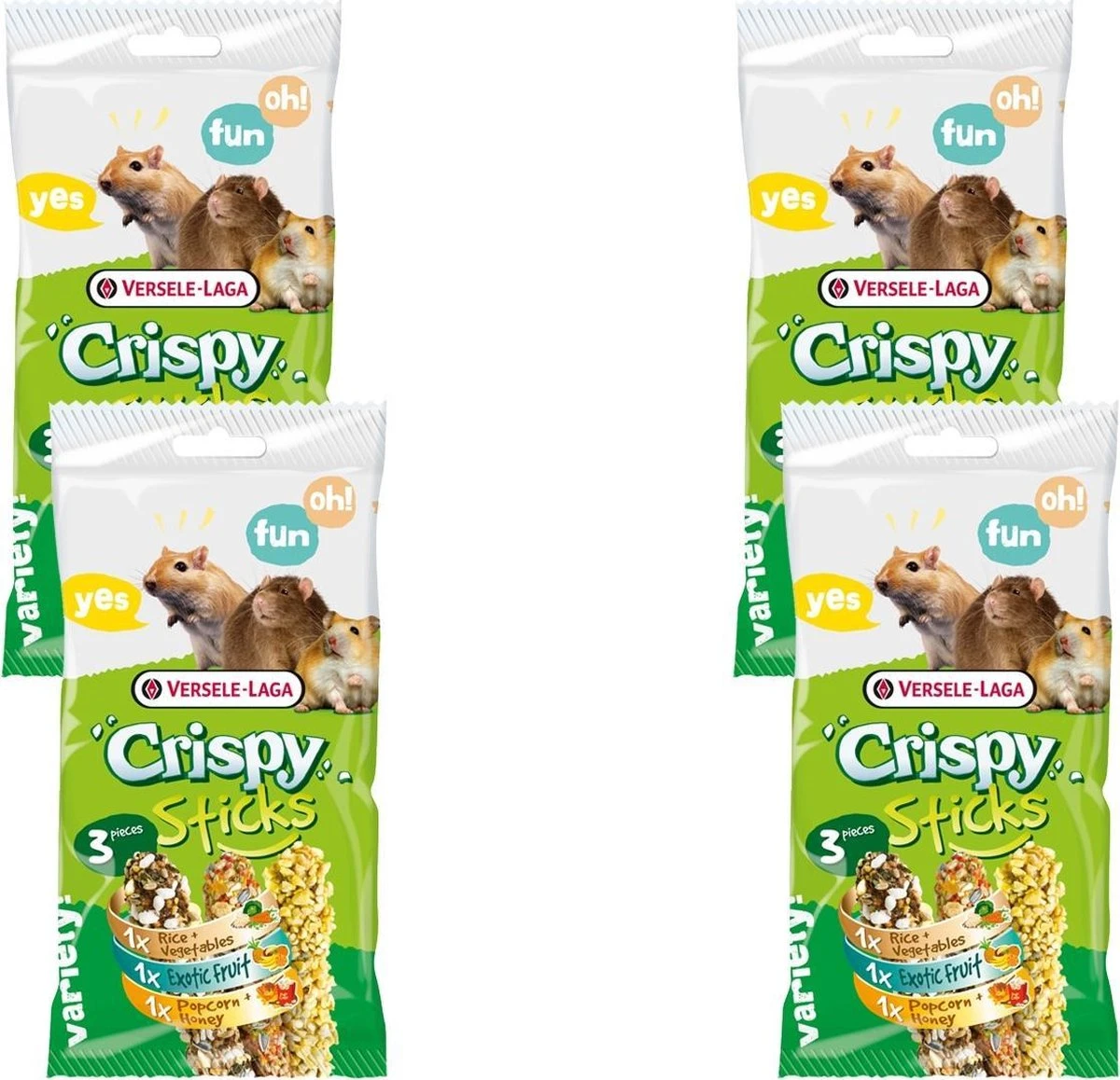 Sticks triple variety pack is een product van Versele-Laga Crispybr /-Lekkere tussendoortjes: 1 exotisch fruit, 1 rijst&groenten en 1 popcorn&honingbr /-Ovengebakken, handig te bevestigen aan kooibr /-Knapperig vers door versheidsverpakking