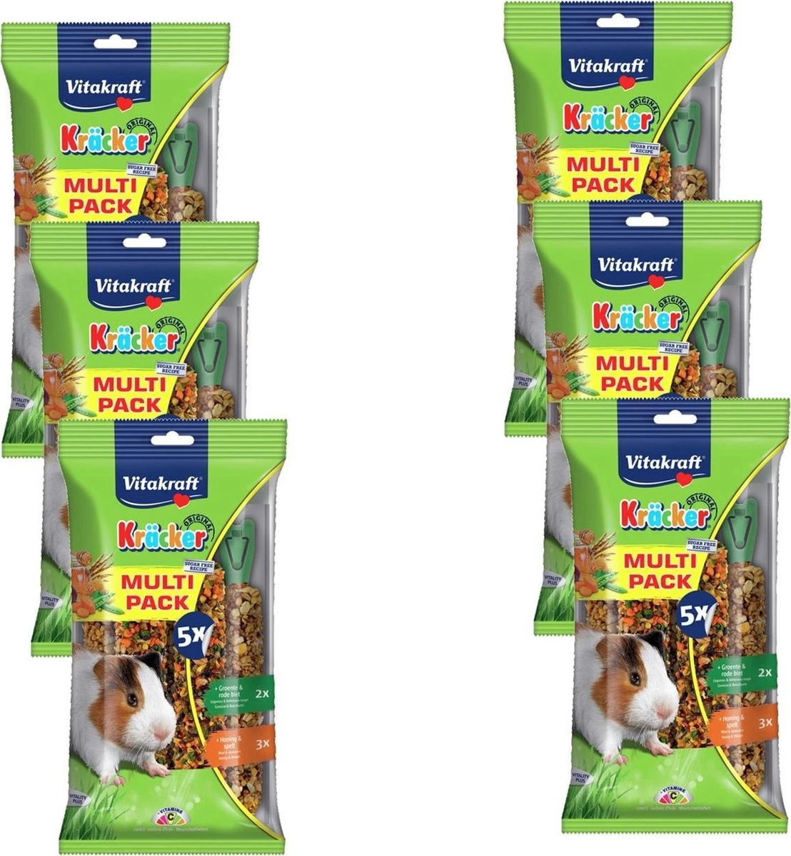 De orginele multipack Vitakraft Kräckers zijn een verantwoorde lekkernij met 2 groente, bieten kräckers en 3 honing, spelt kräckers. Ze bevatten lekkere granen, groente, bieten, honing en spelt op een natuurlijk knabbelhoutje. De Kräckers zijn lekker van smaak en 3-voudig gebakken waardoor de ingrediënten stevig vastzitten en de cavia bezig wordt gehouden zoals dit in de vrije natuur ook gebeurt. Dit geeft de cavia de nodige beweging en zorgt ervoor dat hij zijn snijtanden op natuurlijke wijze kan afslijten. De Kräckers zijn afgestemd op de voedingsbehoefte van de cavia. Met waardevolle vitamines, extra vitamine C en bereid volgens een suikervrije receptuur.