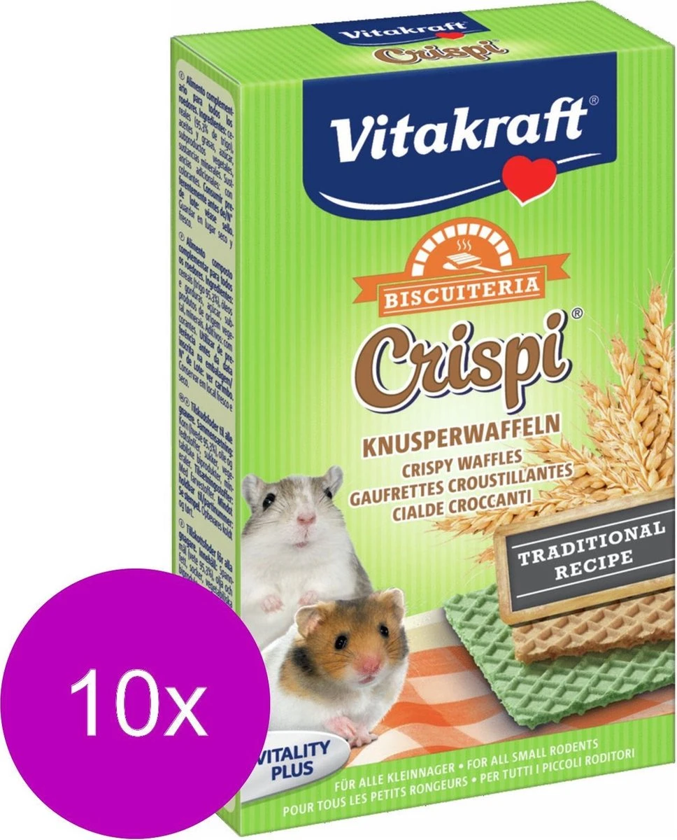 Lekkere krokante wafeltjes met voor kleine knaagdieren belangrijke mineralen. De lekkernij is bereid volgens traditioneel recept en een heerlijk tussendoortje. Zonder smaakversterkers en conserveringsmiddelen. 12 Wafeltjes per verpakking.