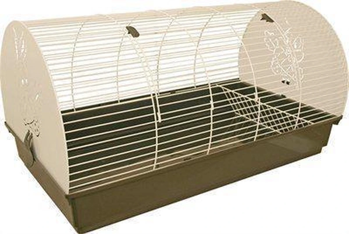 De Voltrega 996 is een ivoor met bruin gekleurde konijnenkooi. De kooi wordt geleverd inclusief groenvoerruif.